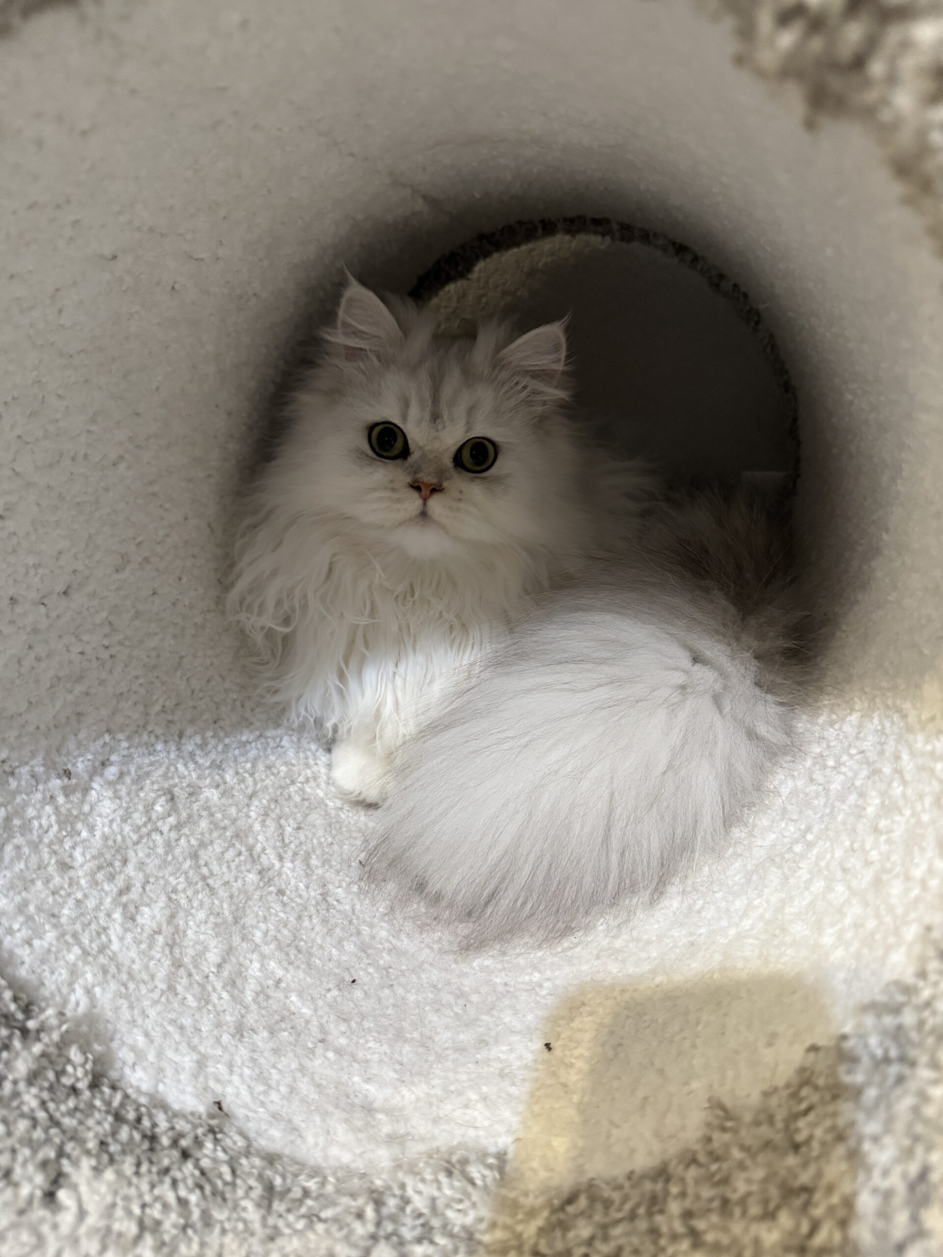 While most Persian cats prefer to lounge around, this little genius has mapped out every corner of our house. He follows his humans like a loyal companion, always ready to join any activity. His intelligence shines through in how quickly he learns and adapts – a rare trait in Persian cats.
