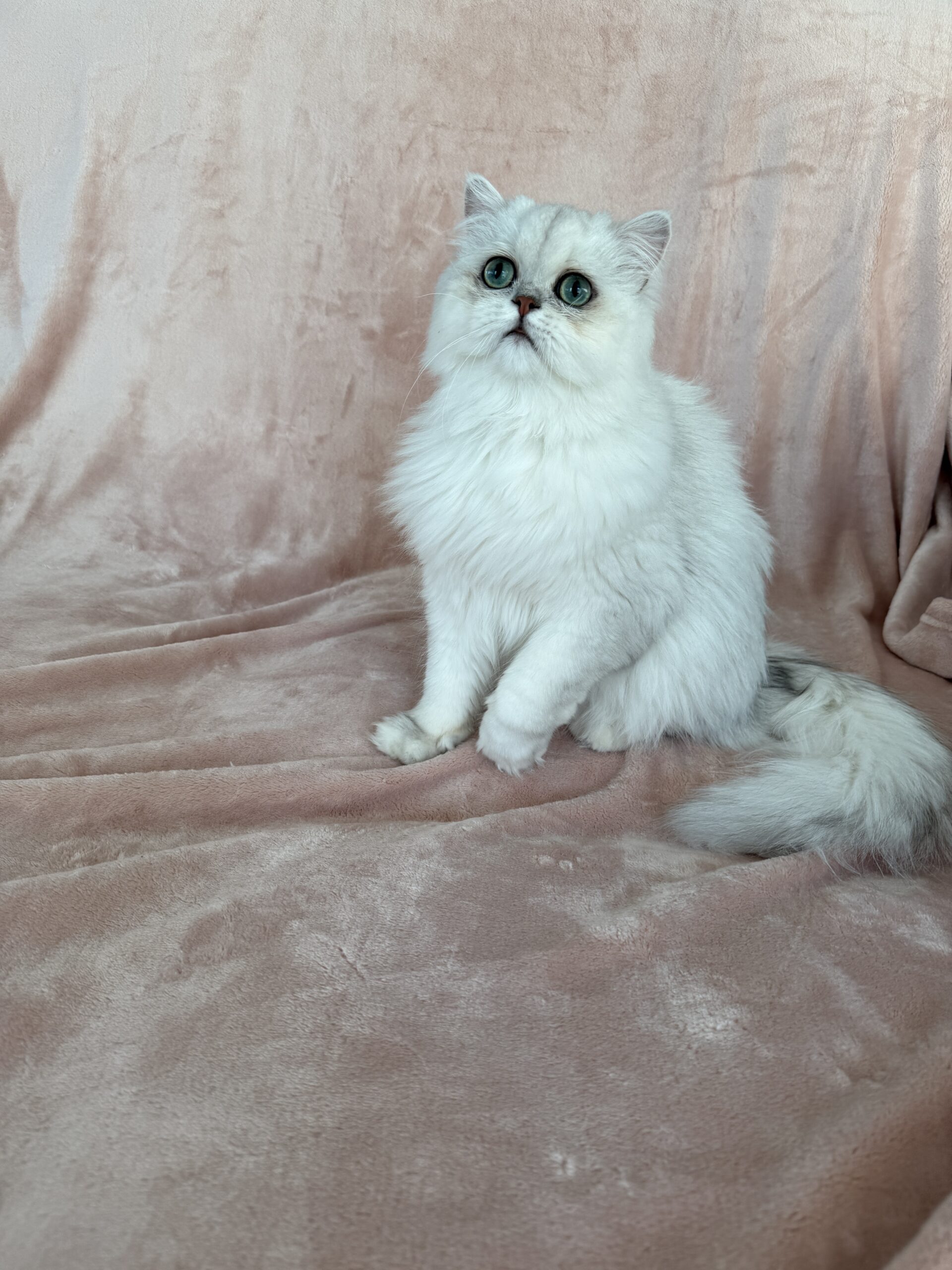Chinchilla Point Persians are a newer and rarer variation that combines some of the best qualities of both White and Silver Chinchillas. Their coats are typically cream to soft white with subtle shading, and they have blue eyes ranging from pale to deep sapphire.